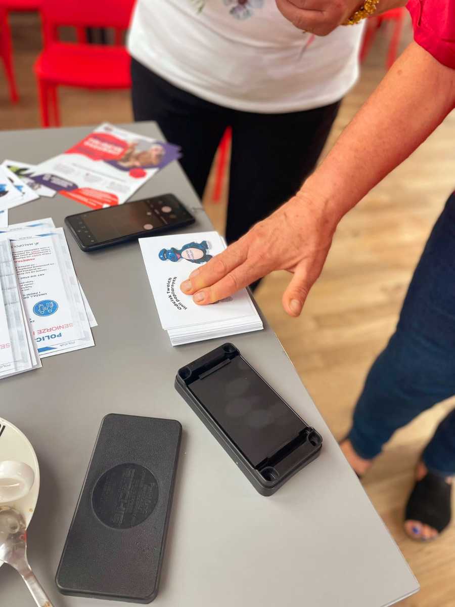 Osoby uczestniczące w spotkaniu miały możliwość wykonania własnych odcisków linii papilarnych. Mimo, iż ta atrakcja bywa często kojarzona z dziećmi to tym razem seniorzy z uśmiechem i zaciekawieniem podchodzili do stanowiska, by własnoręcznie zostawić swój odcisk i zabrać go na pamiątkę. Przekazano materiały profilaktyczno-edukacyjne oraz każdy mógł poczęstować się słodyczami dzięki fundacji „Wawel z Rodziną”.