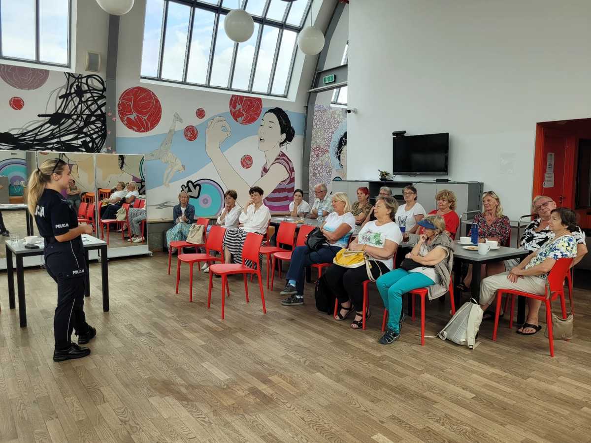 8 lipca 2025 roku policjantki Wydziału Prewencji Komendy Wojewódzkiej Policji w Krakowie przeprowadziły spotkanie profilaktyczno-edukacyjne w Centrum Aktywności Seniora Spot Nestor Bonarka przy ul. Kamieńskiego 11 w Krakowie.