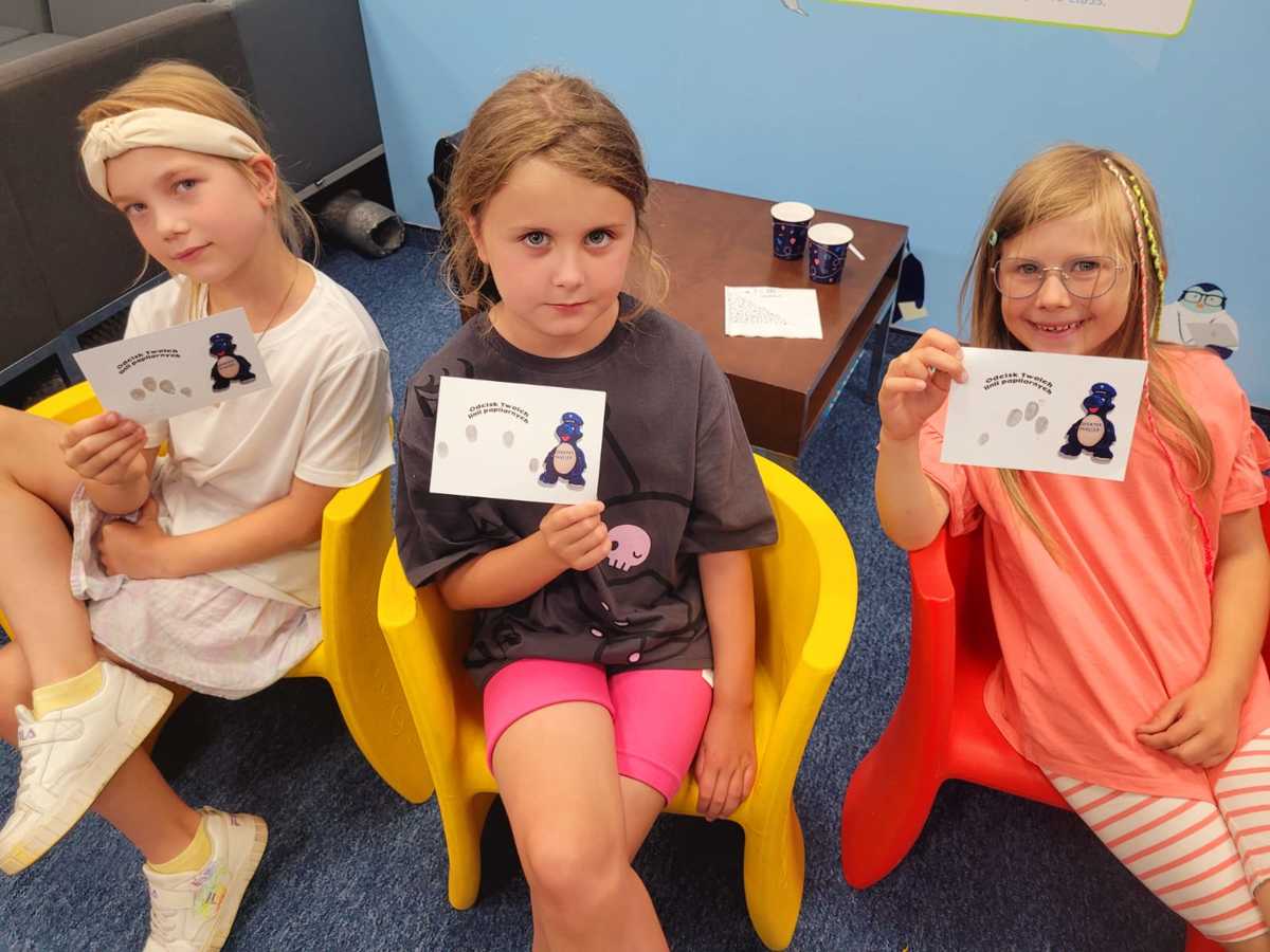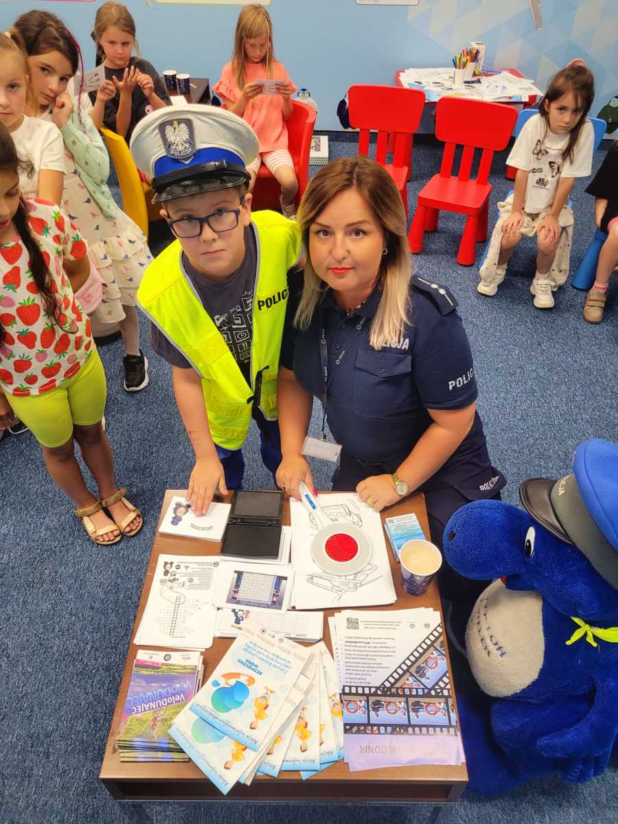 Podczas działań uczestnicy mieli również okazję zapoznać się z policyjną pracą i podstawowymi zasadami bezpieczeństwa. Policjantki poprzez zabawę uczyły i przypominały o właściwym zachowaniu podczas podróży, podjęto temat elementów odblaskowych