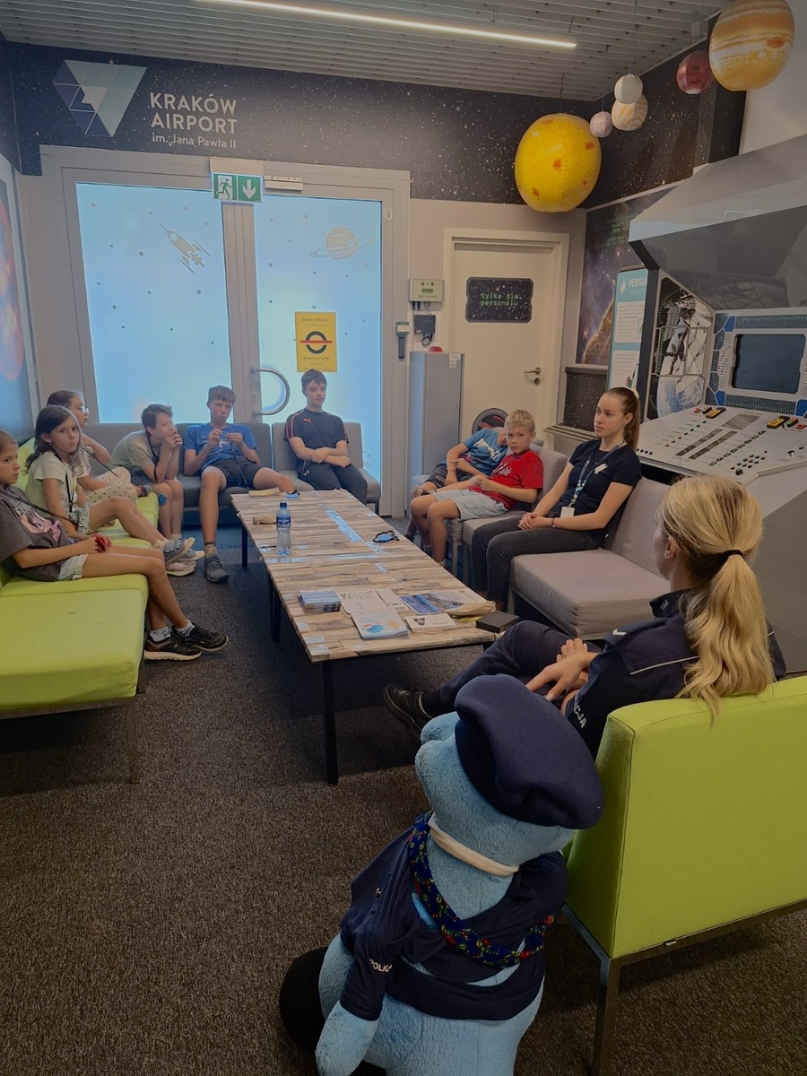 5 sierpnia 2025 roku policjantki Wydziału Prewencji KWP w Krakowie przeprowadziły warsztaty profilaktyczno-edukacyjne „Bezpieczeństwo podczas wakacji” dla dzieci uczestniczących w letniej półkolonii w Centrum Edukacji Lotniczej KRAKÓW AIRPORT.