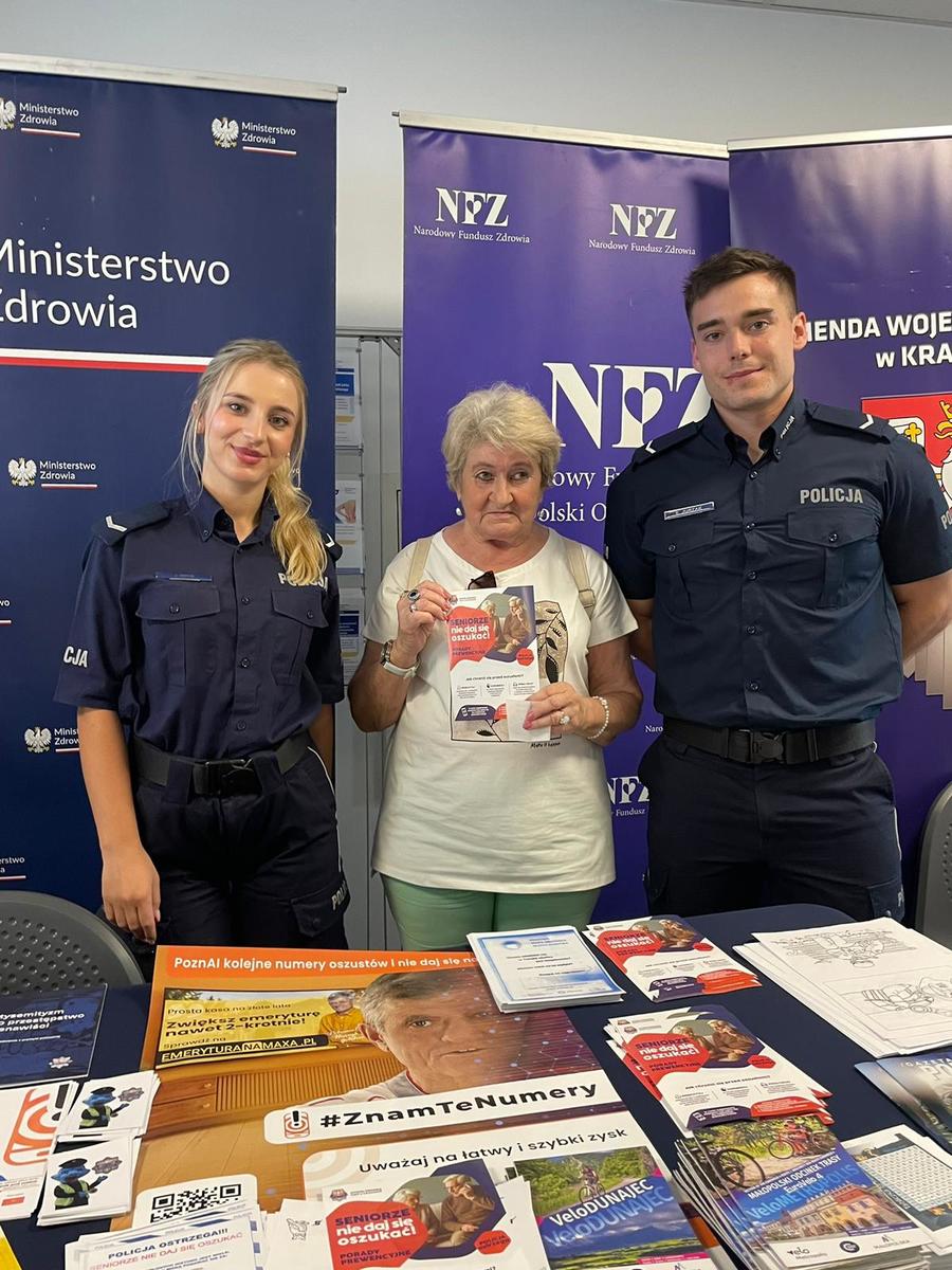 2 września 2025 roku w Małopolskim Oddziale Narodowego Funduszu Zdrowia przy ul. Wadowickiej w Krakowie policjanci Wydziału Prewencji KWP w Krakowie wspólnie z pracownikami NFZ przeprowadzili działania informacyjno-edukacyjne pn. „Bezpiecznie i zdrowo”.
