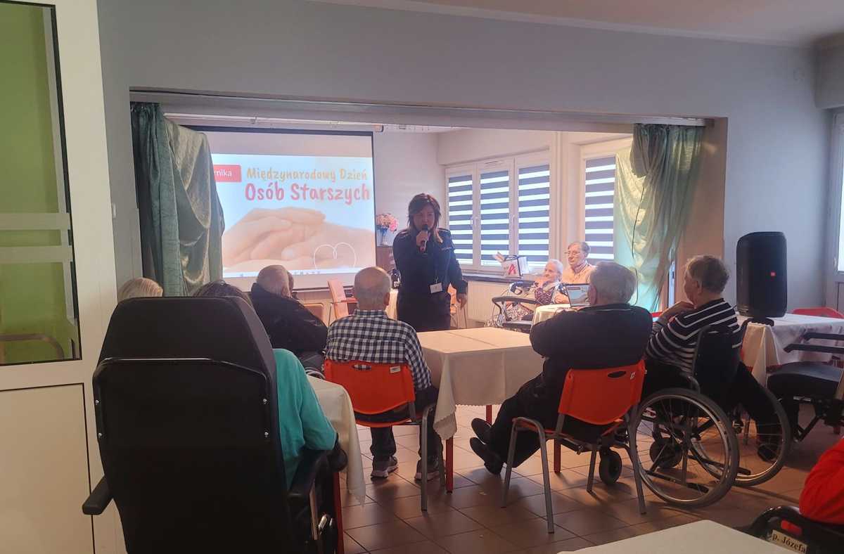 2 października br. policjantki Wydziału Prewencji Komendy Wojewódzkiej Policji w Krakowie zorganizowały spotkanie profilaktyczno-edukacyjne w Domu Pomocy Społecznej przy ul. Kluzeka w Krakowie, w ramach obchodów Międzynarodowego Dnia Osób Starszych.