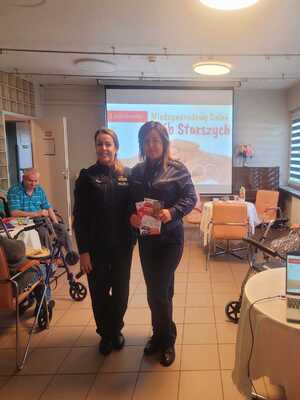 Podczas spotkania z seniorami szczególną uwagę poświęcono tematyce związanej z aktualnymi zagrożeniami wymierzonymi w osoby starsze. Przedstawiono algorytm postępowania w przypadku próby oszustwa. Omówiono najczęściej występujące schematy oszustw, w tym metody „na wnuczka”, „na policjanta”, czy internetowe formy wyłudzania danych i pieniędzy. Ponadto uwrażliwiono seniorów na konieczność zachowania ostrożności w kontaktach telefonicznych oraz w przypadku, gdy ktoś podaje się za krewnego, mimo iż widzimy te osobę pierwszy raz w życiu. Przedstawiono algorytm postępowania podczas różnych prób oszustw. Seniorzy otrzymali praktyczne wskazówki oraz dowiedzieli się, jak dbać o swoje bezpieczeństwo.
