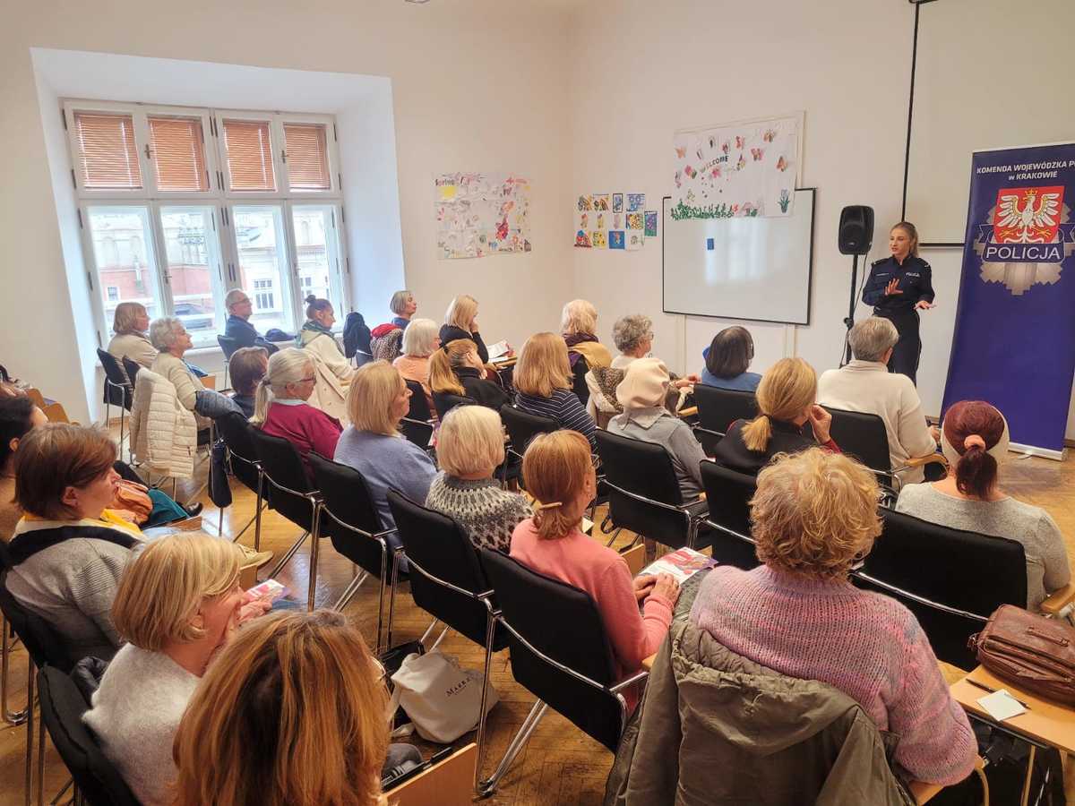 16 października br. policjantki Wydziału Prewencji Komendy Wojewódzkiej Policji w Krakowie przeprowadziły prelekcję w Jagiellońskim Uniwersytecie Trzeciego Wieku w Krakowie.