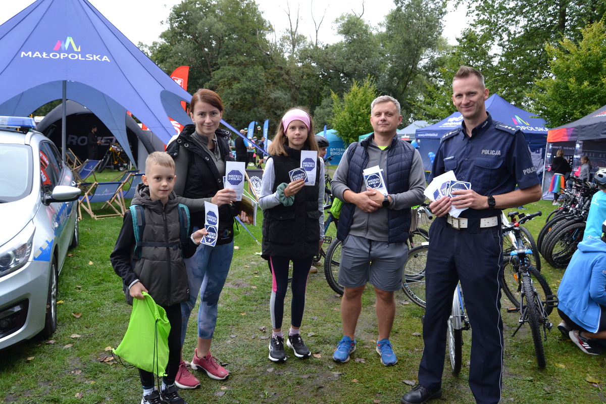 W niedzielę 7 września br., w ramach Ogólnopolskiej Kampanii „Mistrzu, Zwolnij”, policjanci z Wydziału Ruchu Drogowego KWP w Krakowie podczas organizowanego Małopolskiego Rajdu Rowerowego w Dąbrowie Tarnowskiej, promowali założenia kampanii.