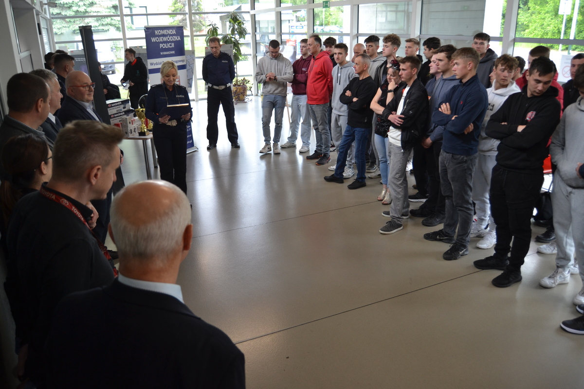 Nagrody wręczali Pan Paweł Mucha – Dyrektor Małopolskiego Ośrodka Ruchu Drogowego w Krakowie, podinsp. Jarosław Bator - Ekspert Wydziału Ruchu Drogowego KWP w Krakowie oraz Pan Zbigniew Kogut - przedstawiciel Polskiego Związku Motorowego Oddział w Krakowie. Zwycięska drużyna z Myślenic, będzie reprezentowała nasze województwo w finale centralnym XXVII Ogólnopolskiego Młodzieżowego Turnieju Motoryzacyjnego, który odbędzie się w czerwcu w Stargardzie Gdańskim w województwie pomorskim.