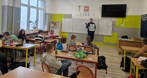16 stycznia br. dzielnicowy Miasta Miechowa wraz z policjantka z Wydziału Prewencji tutejszej jednostki zorganizowali spotkanie profilaktyczno - edukacyjne dla uczniów ze Szkoły Podstawowej w Pojałowicach. Tematem wiodącym podczas spotkania było bezpieczeństwo podczas zimowego wypoczynku.