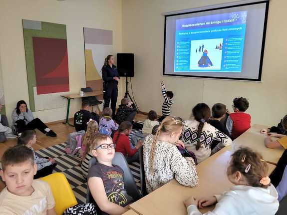 Policjanci Wydziału Prewencji Komendy Miejskiej Policji w Krakowie spotkali się z dziećmi uczestniczącymi w półkoloniach zimowych, aby porozmawiać o zasadach bezpieczeństwa podczas ferii. Funkcjonariusze w przystępny sposób przypomnieli najmłodszym, jak unikać zagrożeń i właściwie reagować w sytuacjach niebezpiecznych.
